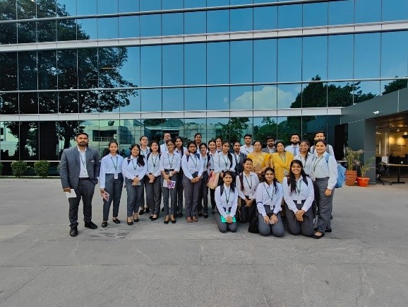 The Chief HR Consultant of the Kelachandra group Mr Ujjal Gangopadhyay welcomed the students along with his team members of the HR Dept. to their office at Embassy Golf Links Business Park. After a brief campus visit, the HR team spoke about the Kelachandra group through a video show, its five business verticals and the different initiatives undertaken at EGL such as fire and safety, waste conversion, transport services etc. The team also highlighted the HR facilities such as a well-maintained canteen, hotel, temple within the premises of EGL, saloon,, ATM and availability of doctor for the employees to keep them motivated and happy at workplace.