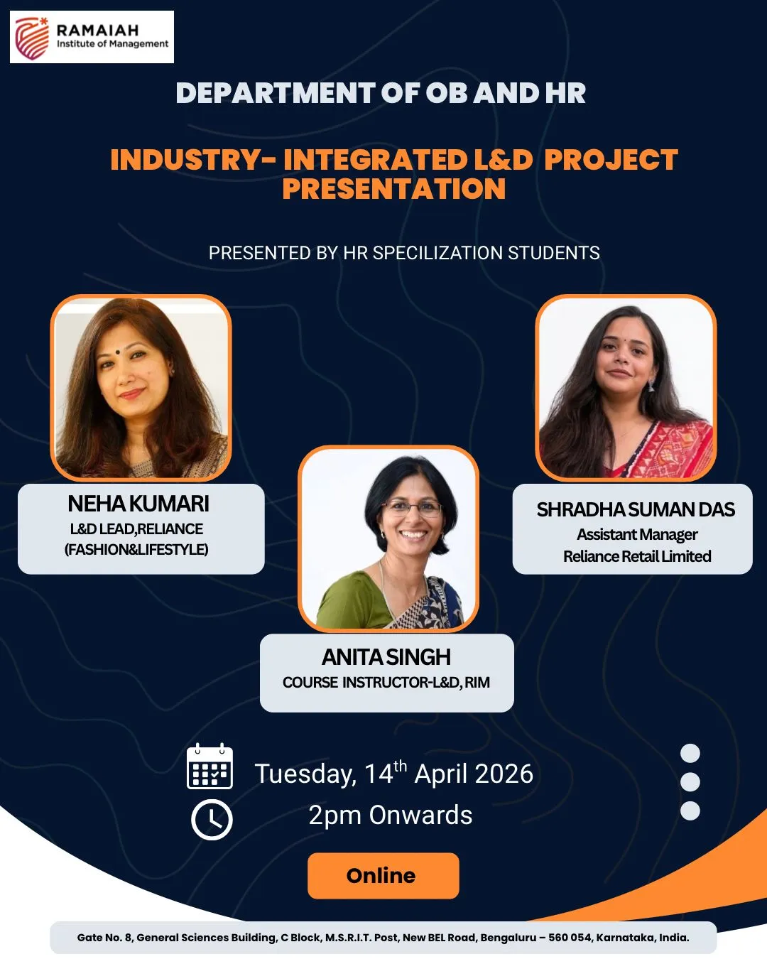 We are pleased to announce the upcoming Industry-Integrated Learning & Development Project Presentations at the Ramaiah Institute of Management.